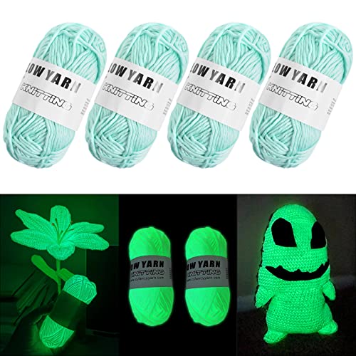 AUAUY 4 rullar glänsande garn i mörkret, 55 m, DIY-konst, hantverk och sömnad, nybörjare, stickning, virkning och festtillbehör till jul, alla hjärtans dag, nyårsgåva, blå