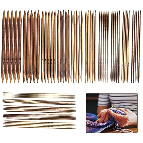 HENGBIRD Sticknålar bambu set, 75 stycken nålspel set dubbelspikade handarbete sticknålar för nybörjare och proffs stickning nålar set 2 till 10 mm för strumpor handskar och halsdukar