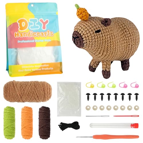 AUAUY Krokkit för nybörjare, stickning av djur, komplett krokkit för barn och vuxna, med steg-för-steg-instruktioner och videohandledning (Capibara)