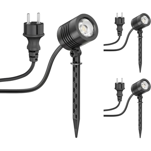 ledscom.de 3 st Liten LED-trädgårdsstrålkastare med jordspett TARL för utomhusbruk, IP65, stickpropp, svart, 4,3 W, 340lm, varmvit