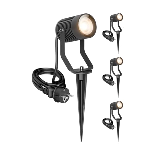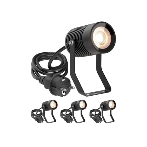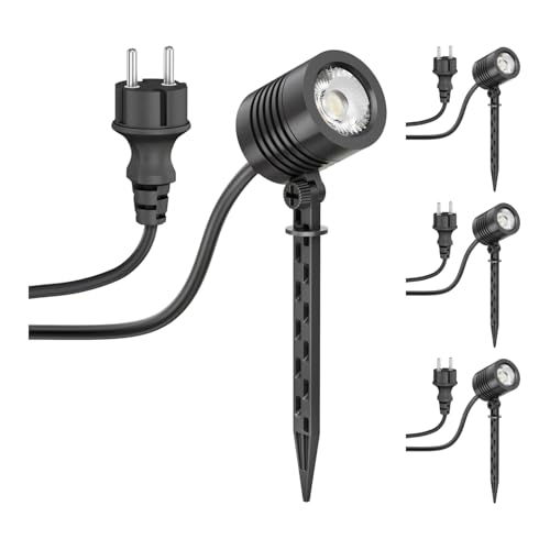ledscom.de 4 st Liten LED-trädgårdsstrålkastare med jordspett TARL för utomhusbruk, IP65, stickpropp, svart, 4,3 W, 340lm, varmvit