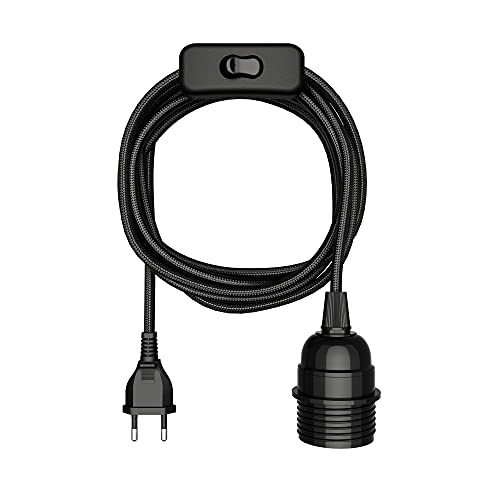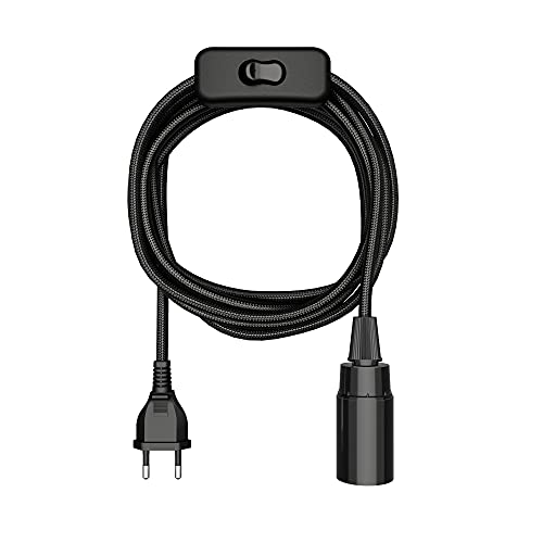 ledscom.de Textilkabel LEKA, stickpropp, strömbrytare, svart, 3 m, lamputtag, 1x E27 max. 60W