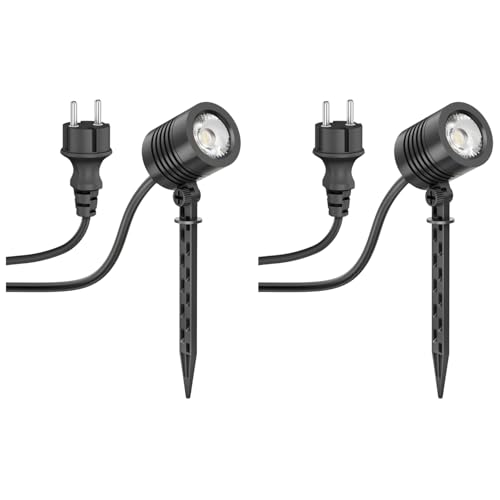 ledscom.de 2 st Liten LED-trädgårdsstrålkastare med jordspett TARL för utomhusbruk, IP65, stickpropp, svart, 4,3 W, 340lm, varmvit
