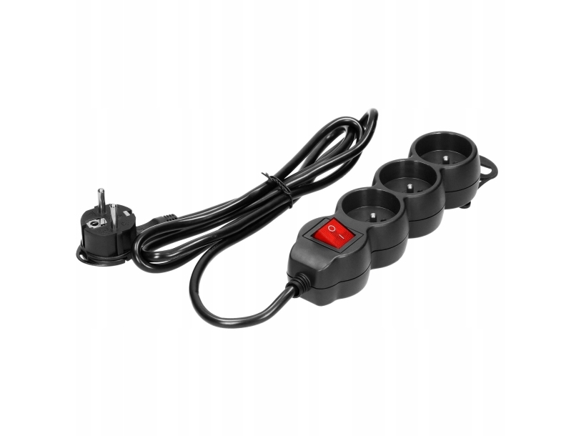 Förlängningskabel 3Gang 2P+Z, 1,5M H05vv-F 3X1,5Mm2 , Imax=16A, Flat Stickpropp, Svart