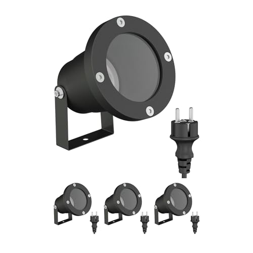 ledscom.de 4 trädgårdsstrålkastare DUK för utomhusbruk, IP65, stickpropp, svart, 1x GU10 max. 15W