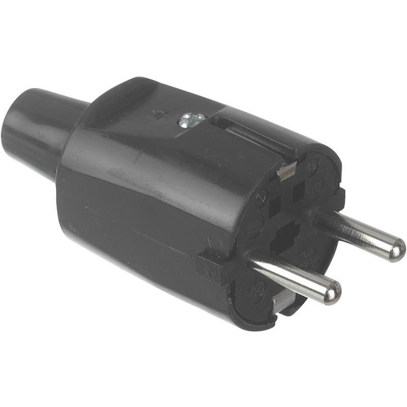 Svart stickpropp rak 16A Nelco Typ 637S