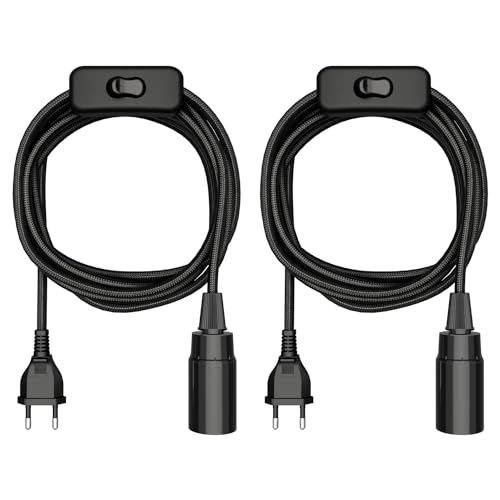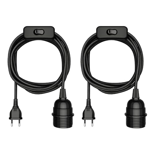 ledscom.de 2 st textilkabel LEKA, stickpropp, strömbrytare, svart, 3 m, lamputtag, 1x E27 max. 60W