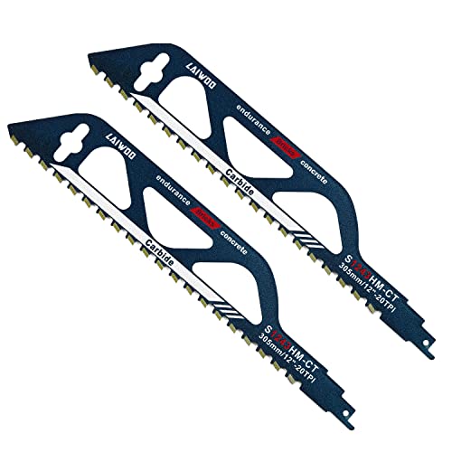 LAIWOO 2 x sticksågsblad, hårdmetallstål sågblad sten, sågblad lättbetong, tillbehör sticksåg för lättbetong för Einhell, Dewalt, Bosch (S1243HM, 305 mm)