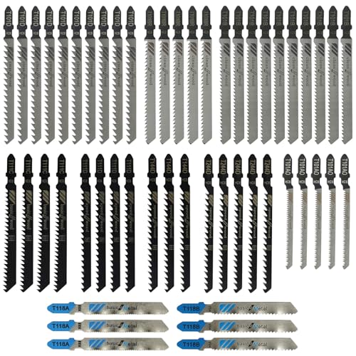 TRUEIN 52 delar professionellt sticksågsblad, sticksåg, 10 modeller, T-skaft sågblad med plastlåda, sticksågblad för trä och metall