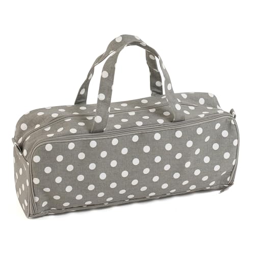 Hobby Gift Exklusiv stickväska 100% mjuk bomull, Stickfodral med dragkedja, garnögla, garnhållare, virkpåse, dubbla handtag, 13 x 45 x 18 cm, grå prickar