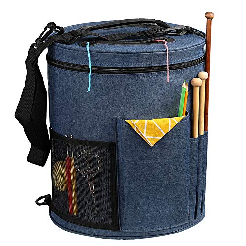SumDirect Stickväska, garnorganiserare, tygväska bärbar förvaringsväska för garn, bärprojekt, sticknålar, virkkrokar, manualer och andra tillbehör (blå)