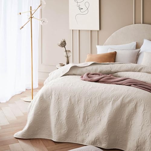 ROOM99 Leila elegant överkast i gräddvit, 200 x 220 cm, mångsidig filt som sängöverkast eller sofföverkast, överkast för säng och soffa, täcke, stil, perfekt som sängspread