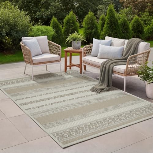Mia's mattor Adora – modern matta, boho-stil, lämplig för inomhus- och utomhusbruk, särskilt platt, perfekt för kök och matsal men också för balkong eller terrass, design 2, 760 – beige, 160 x 220 cm