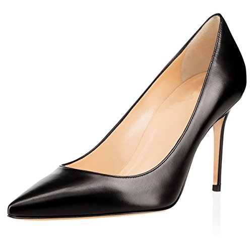 elashe Pumps dam spetsig tå stilett, 8 cm trosor på lackspumpar, klassiker fest kontor hög klack, Matt svart, 39 EU