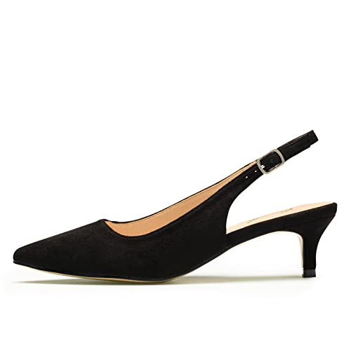 GENSHUO klassiska högklackade, spetsiga stilett mid-höga klackar för kvinnor, dam högklackade pumps 10 cm festklänning pumps skor lackläder, storlek 35-42 EU (svart, 38)