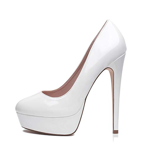 GENSHUO Stilett för kvinnor högklackade platåpatent, 14 cm sexig slip-on plattform klackar hovskor för kvinnor storlek 3,5-8,5 UK, Vitt, 37.5 EU