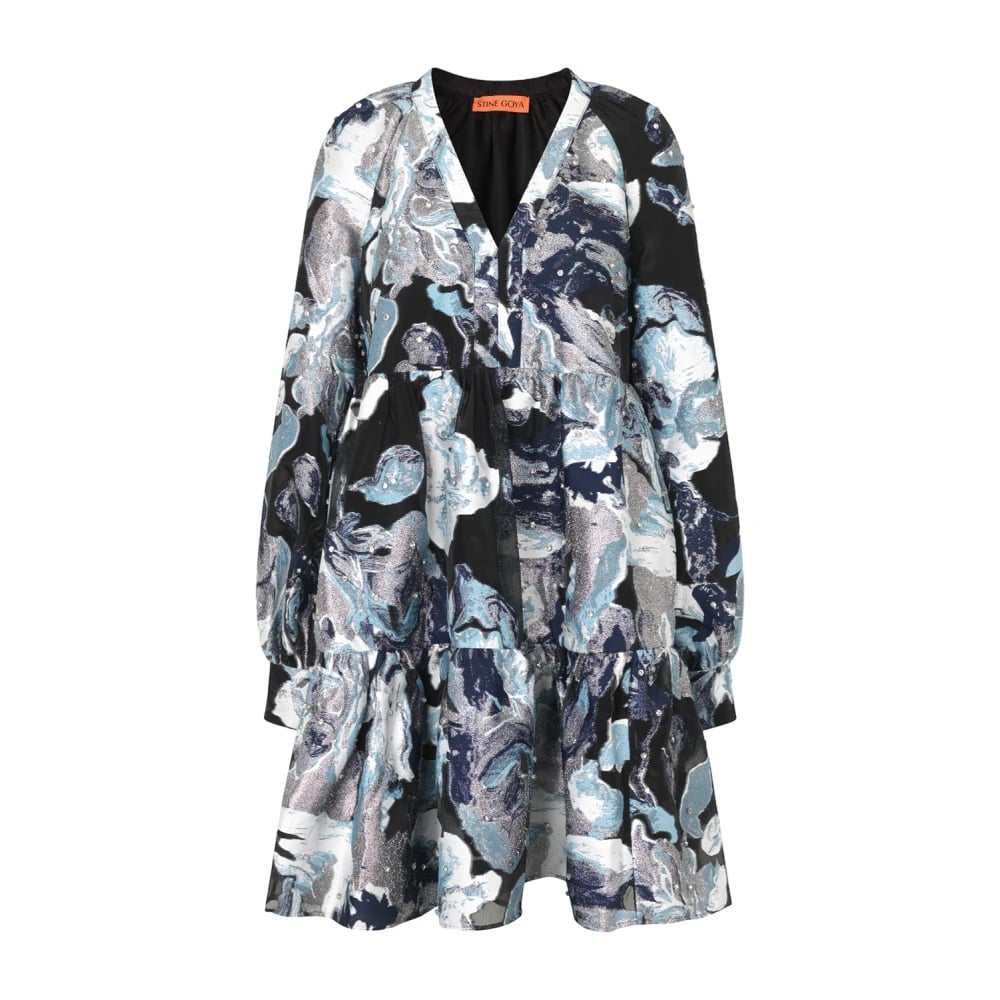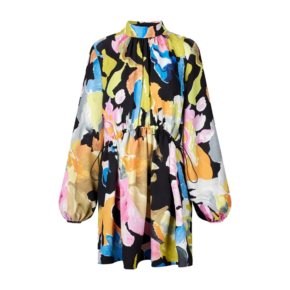 Stine Goya Balloon Långärmad, smockade blommor, kort klänning