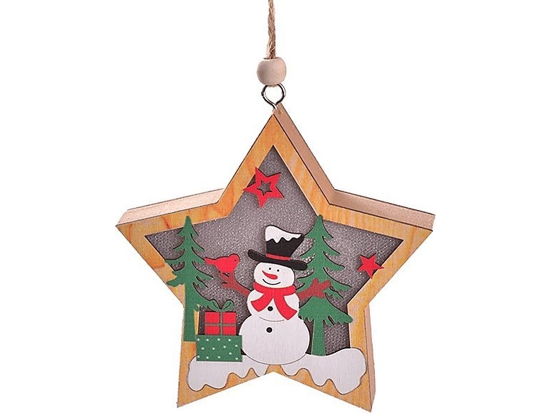 Julbelysning Med Snögubbe I Trä - Stjärna