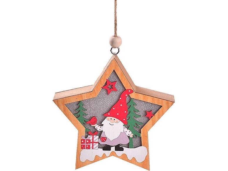 Julbelysning Och Julklapp Med Tomte I Trä - Stjärna