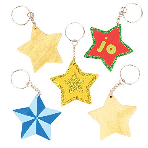 Baker Ross AV609 nyckelring stjärna av trä för barn som hantverk och dekoration för pojkar och flickor (8 stycken), 6 cm, träfärger
