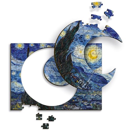 Trefl – Träpussel: Stjärnenatt, Vincent van Gogh - Konstnärligt läggspel Wooden Puzzle, Berömda målningar, Berömda konstnärer, Underhållning för vuxna och barn från 9 år, 200 delar
