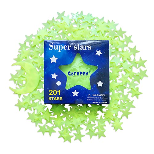 3D lysande stjärnor, CAYUDEN 201 st färgglada superljusa lampor i mörkret stjärnor klistermärken för tak stjärnor och måne lysande stjärnor plast väggklistermärken för barnrum stjärnhimmel dekoration