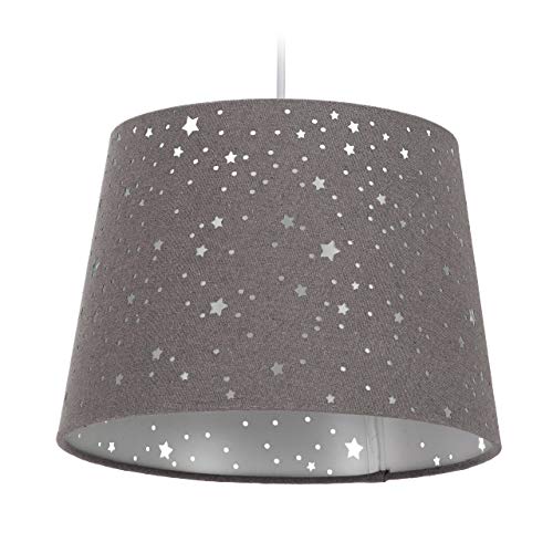 Relaxdays Barnrum stjärnor, hängande paraplylampa, pojkar & flickor, stjärnhimmel, E27, rund tygskärm, grå, 10028042_111