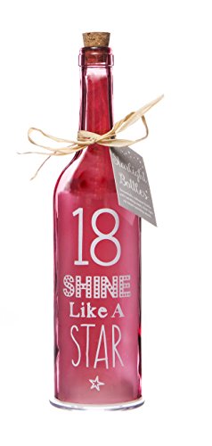 Boxer Gifts SB1218 upplyst LED '18' födelsedag glas stjärnljus flaska | Vacker, dekorativa hemvaror levereras med presentetikett, 6,7 cm x 29,5 cm