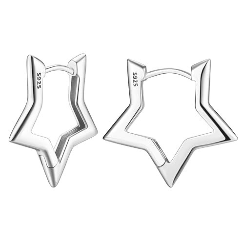 JeweBella Små örhängen i 925 sterlingsilver för kvinnor, flickor, 18K, guldpläterade, allergivänliga, stjärnörhängen, rektangel, triangel, minimalistisk, geometrisk, 925/1000 silver