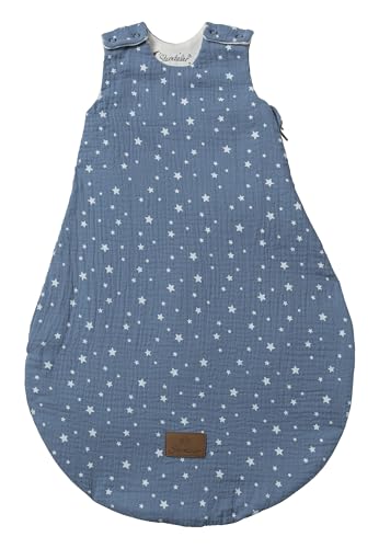 molis & co. 0,5 TOG sommarbaby sovsäck. 18 till 36 månader. 105 cm (43,3 tum). Supermjuk och lätt. Unisex stjärntryck i blått och beige. Perfekt för sommaren. Premium muslin växtväska för bebisar.