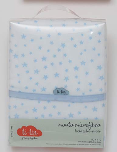 Ti TIN Babyfilt med himmelskt stjärntryck | Hjälpsam varm och mjuk lätt filt för bil - minispjälsäng - Spjälsäng, 75 x 110 cm