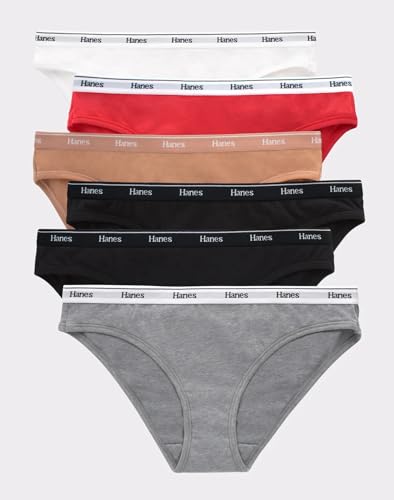 Hanes kvinnors original bikinitrosor, stretch bomullsunderkläder, basic blandade färger, 6-pack, Shelton röd, stjärntryck, betong Pe Heather, svart, djup glöd, svart, M