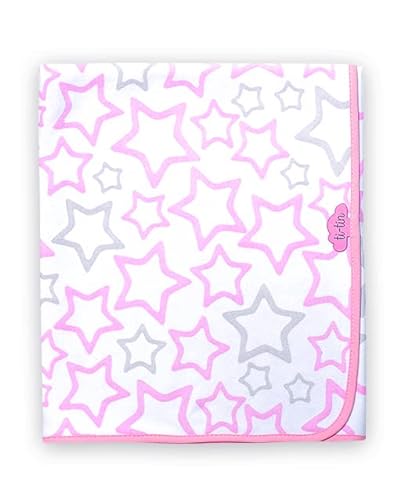 Ti TIN | Mjuk och absorberande 100% bomull dubbelskiktad babyrulle med dubbla interlocktyger | rosa stjärntryck