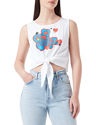 Love Moschino bomullströja för kvinnor med logotyp, hjärtan och stjärntryck t-shirt, Optisk vit, 38
