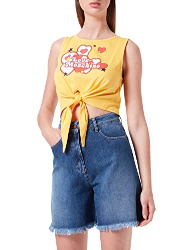 Love Moschino bomullströja för kvinnor med logotyp, hjärtan och stjärntryck t-shirt, gUL, 46