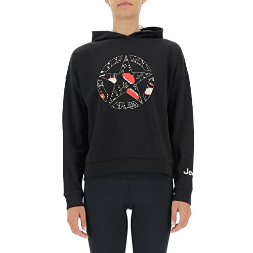 Jeep J J22w överdimensionerad tröja med huva för kvinnor med huva med stjärntryck J22w lång tröja för damer