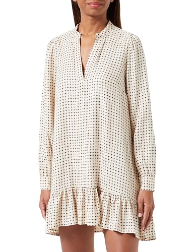 KAFFE Dam kort klänning lång ärm V-notch neck avslappnad passform A-linje silhuett, Rök grå/svart stjärntryck, 38