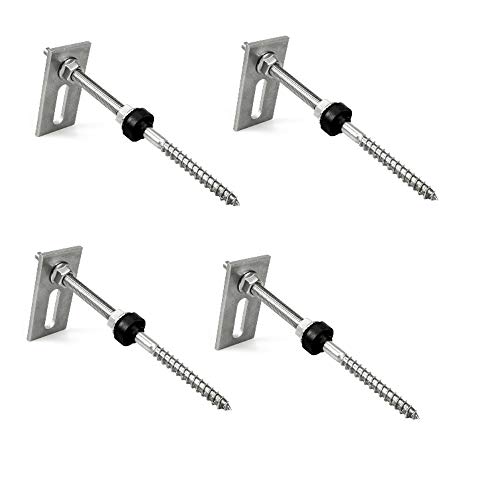 4 st. Offgridtec© stockskruv M10 x 200 rostfritt stål justerbar höjd inkl. adapterplåt EPDM gummitätning