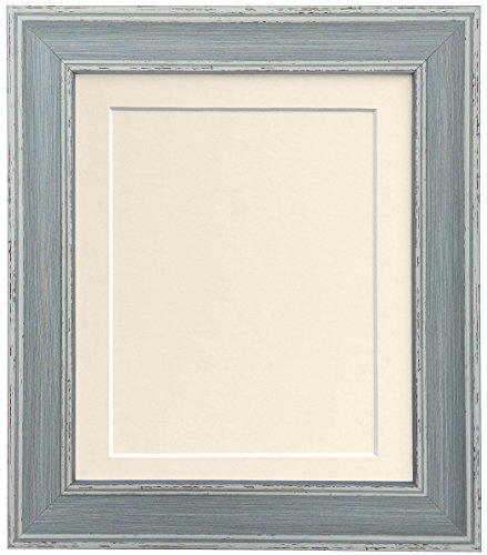 FRAMES BY POST scandi nödställd blå bildram med elfenbensfäste och stödbräda 8 x 6 för bildstorlek 15 x 10 cm