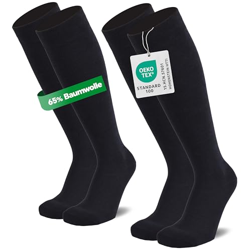 Stödstrumpor (2 par) med kompression, resestrumpor med 65 % bomull, kompressionsstrumpor för kvinnor och män – stödknästrumpor utan irriterande sömmar, 2x svart, 47-50 EU