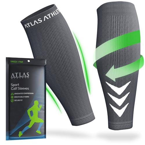 Atlas Athlete Sport Kompressionsstrumpor för Vaden - Herr & Dam – Ideala Vadstrumpor för Löpning, Cykling, Gym - Vad-Kompression med Andningsbart material (1 Par) (Svart, L)