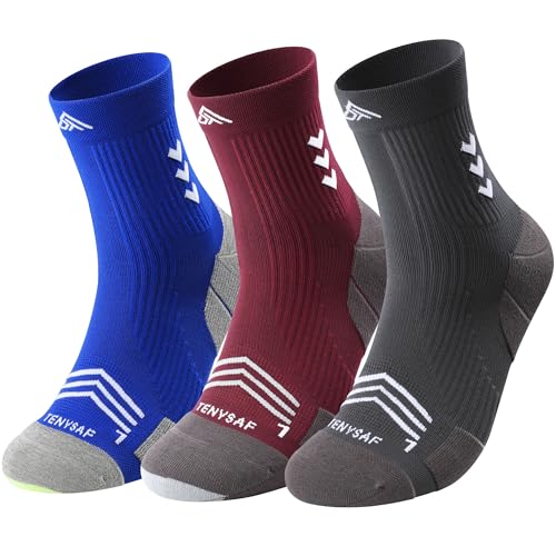 Lounwee kompression löparstrumpor män kvinnor: Anti-bubblor kompressionsstrumpor 3 par sportstrumpor för vandring basket löpning, C-grå röd blå, 39-42 EU