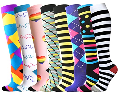 beusilay 8 par kompressionsstrumpor för kvinnor och män, bäst för löpning, idrott, sjuksköterskor, res- och flygstrumpor för stöd, för vader och anklar, sport, graviditet, small-Medium