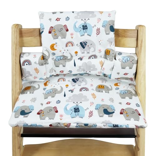 Sittdyna för Stokke Tripp Trapp: Barnstol, sittdyna, dubbel stoppning på ryggstöd, vattentät barn sittdyna avtagbar, ekologisk bomull mjuk sittdyna barnstolstillbehör (elefanter)