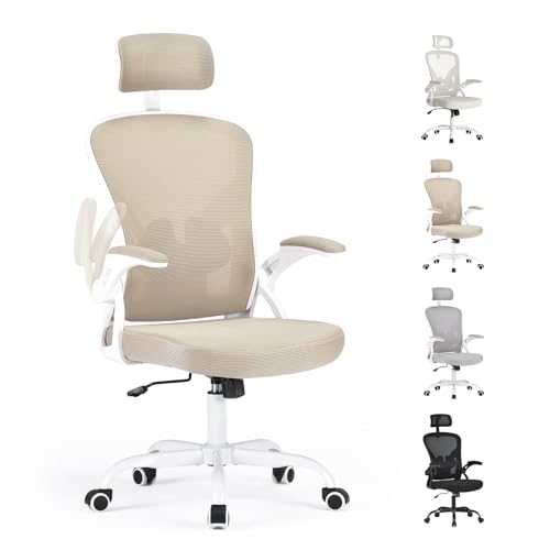 Farini Ergonomisk stol kontor datorstol med hjul skrivbord för bekväm hemmakontor justerbar höjd chefsfåtölj kontorsstol med nackstöd, gråvit