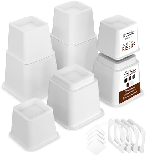 Utopia Bedding 8 delar justerbara möbelstigare (4 höga och 4 korta) stor bärkapacitet för hem och kontor – halkfri kraftig stigare för säng, bord, stol eller soffa – 8 till 23 cm (Vit)
