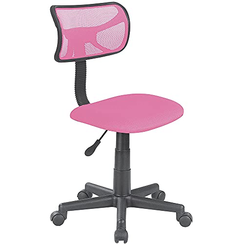 BAKAJI Svängbar stol höjdjusterbar skrivbord fåtölj med hjul kontor kontor ryggstöd ergonomisk mesh andningsbar vadderad sits (Rosa)