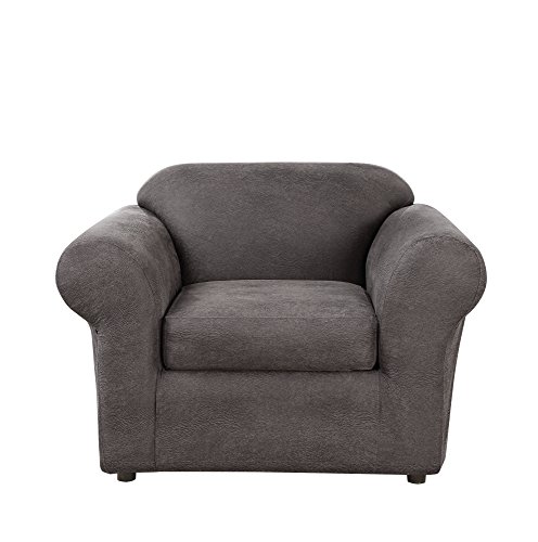 Surefit Sure Heminredning Pique T-kudde stol tre delar överdrag, stretchform passform, polyester/spandex, maskintvättbar, brungrå färg