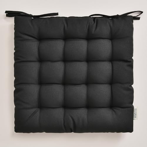ROOM99 Aura stolkudde 40 x 40 x 4,5 cm sittkudde sittkudde med band dekorativ kudde stol golv golvkudde kudde utomhus inomhus vardagsrum svart, 1 styck