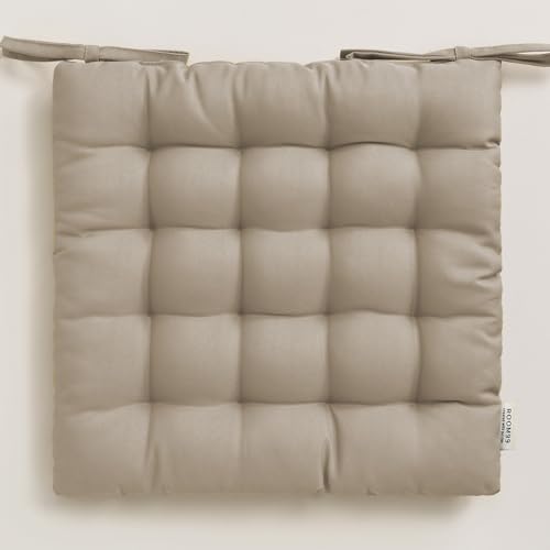 ROOM99 Aura stolkudde 40 x 40 x 4,5 cm sittkudde, sittkudde med band, dekorativ kudde, stol, golv, golvkudde, kudde, kudde, utomhus, inomhus, vardagsrum, beige, 1 styck